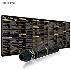 EXCO Python Programing Mouse Pad Large Shortcuts Cheat Sheet Keyboard Mousepad Stitched Edge Non-Slip Base Desk Mat for Engineer