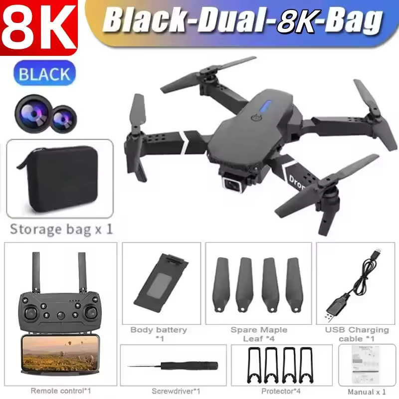 New E88Pro RC Drone 8K Professinal With 1080P Wide Angle HD Camera Foldable Helicopter WIFI FPV Height Hold Boys’ Day Gifts Toys